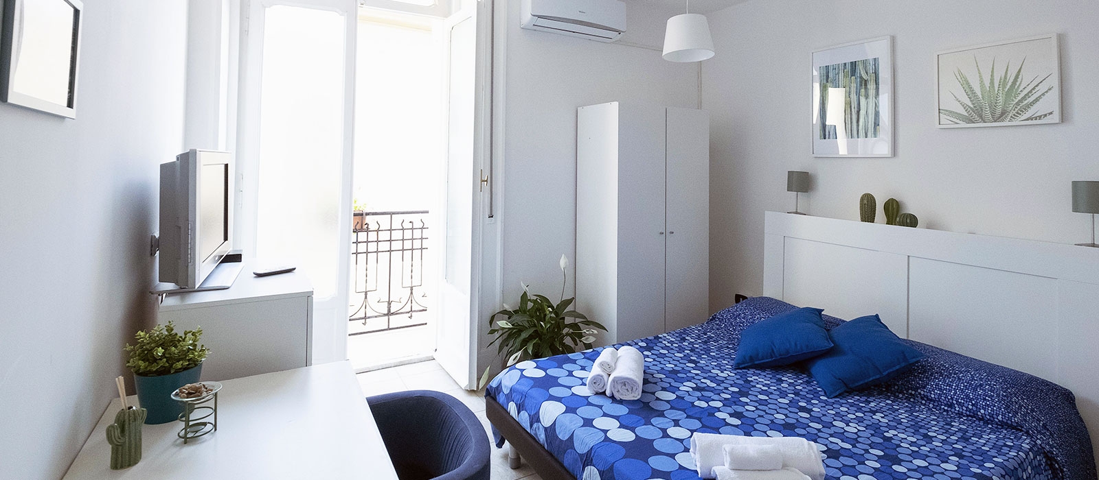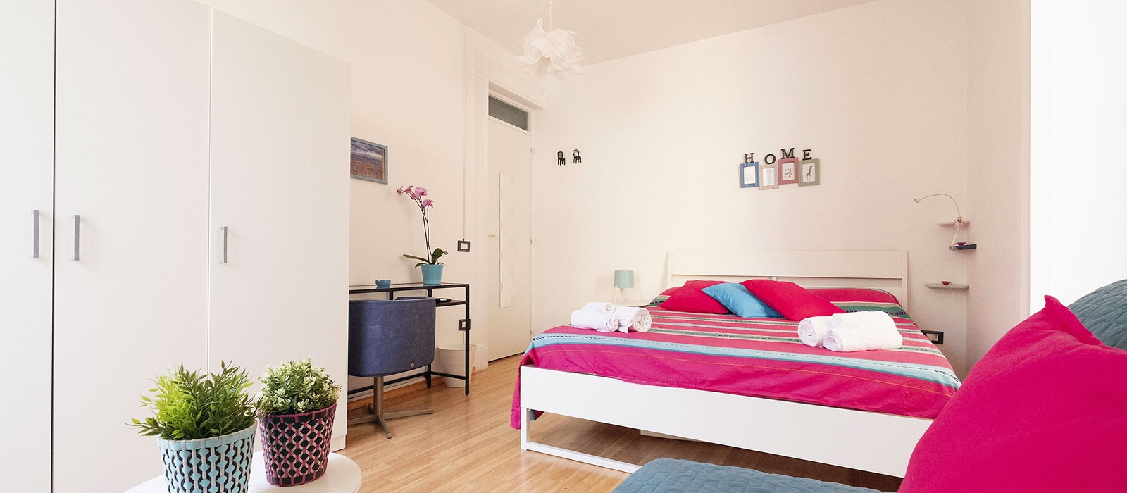 L’edificio e l’appartamento sono stati ristrutturati da poco, le camere sono luminose, ben arredate e con balconi di pertinenza. Dotato di camere matrimoniali e/o triple e/o quadruple; in comune una piccola ma accogliente area comune con una cucina dove prepararsi la colazione come a casa propria.